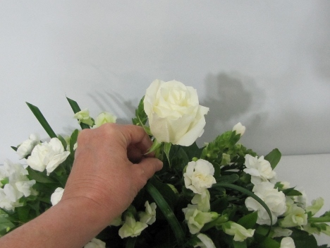 Don't be too much of a perfectionist. I like placing some of my roses a little deeper, but most of them should slightly extend out beyond the other flower heads.