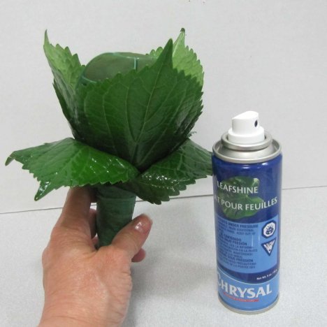 Once I am satisfied with the final effect of the leaves, I spray them with Leafshine, a product that gives a polished "clean" finish to the leaves.