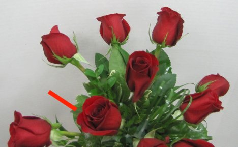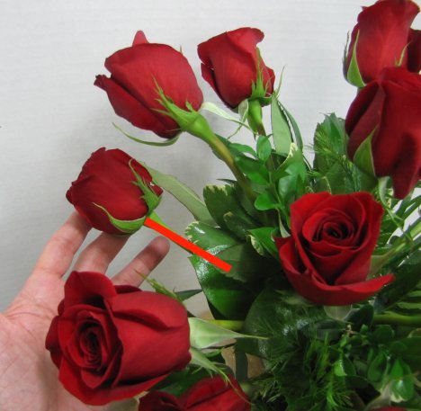 I insert a long stemmed rose and turn the flower face to the left.