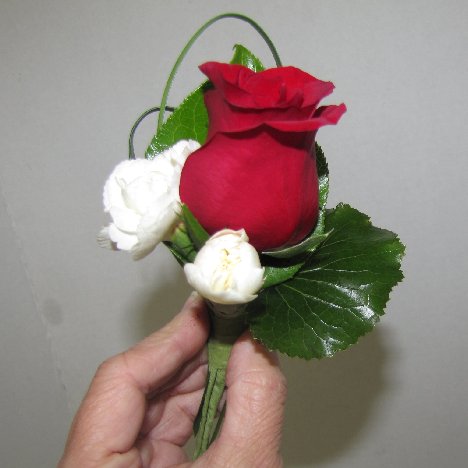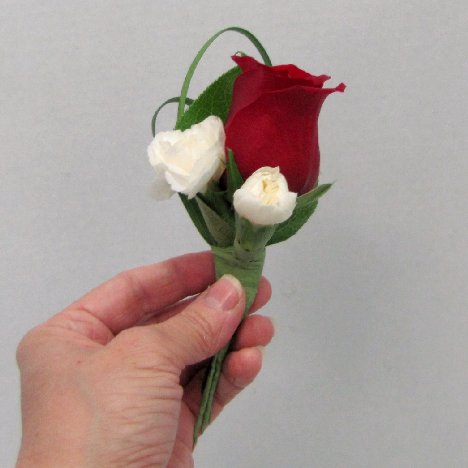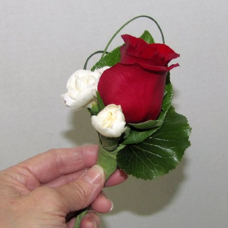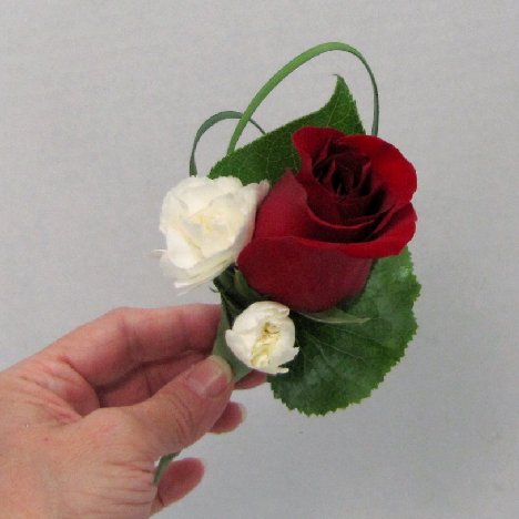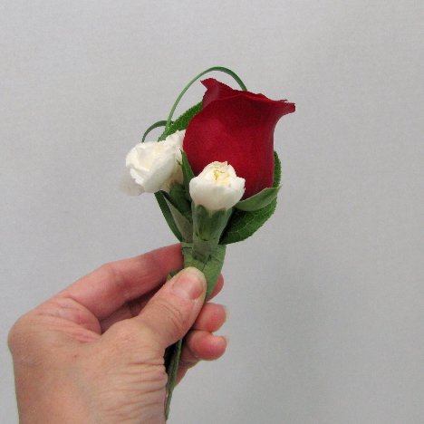 This creates a nice flare outward from the side of the boutonniere, enhancing the rose beautifully.
