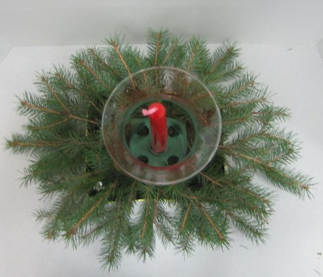 Christmas table centerpieces smell wonderful. Spruce boughs are thick, fragrant and usually has several laterals off the main stem. Cut them apart with a sharp knife or floral snips. Evergreens are tough. Take care when using a sharp knife. Remember that a sharp knife cuts cleaner and more easily than a dull knife.