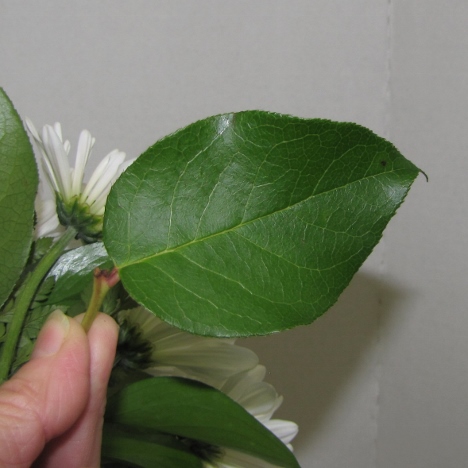 I'm going to continue by using a few more salal leaves for the underside of the bouquet.