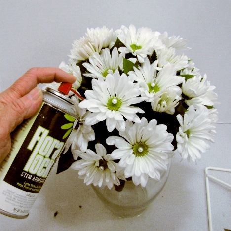 Don't miss the underside where the leaves are inserted. Give a few quick sprays to be sure leaves are securely attached to the foam.