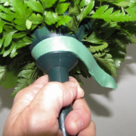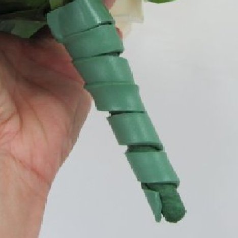 I could just bunch the stems around the handle and tape. But I like to make sure my stems lay properly and conceal all my mechanics. It's easier if you use floral clay wrapped around the handle to press the stems into and hold them in place before wrapping with florist tape.