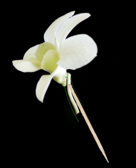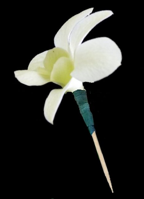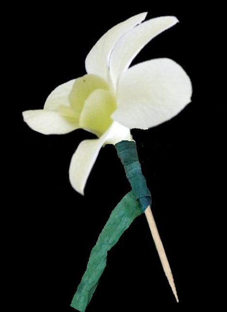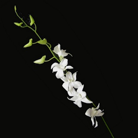 Dendrobium Orchids are separate florets on a long, single stem. Start by washing your hands, as the oils from your fingers can bruise delicate white petals.