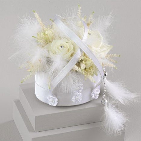 Float soak Floral Foam in water treated with flower food. Cut foam to fit bag, place in liner and insert into bag. Arrange flowers in foam. Add accent feathers. Spray flowers with Finishing Touch or Crowning Glory, making sure to completely coat the fronts and backs of the flowers. Refrigerate until delivery.