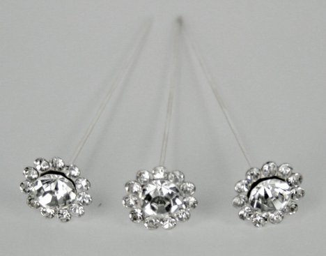 Take the time to wash the pins and allowing them to dry. Insert a long rhinestone pin into the center of each stephanotis and pin to the cake. Take care that the attendant who cuts the cake counts the number of pins and account for all before serving the cake.