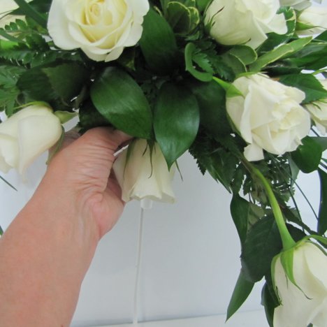 Remember to rewet the foam frequently if needed every day. You'll be amazed how much water is sucked up in a very short time by live roses and greenery. Do NOT allow your foam to go dry. This is very important.