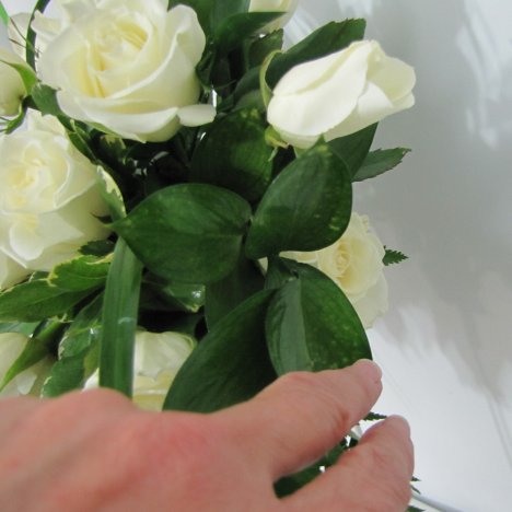 I think I need another rose directly under the center, pushing it up into the bottom of the bouquet holder.