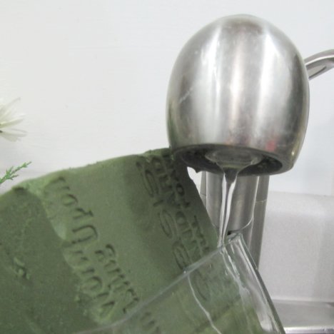 After pushing the foam into the vase, I add more water to replace the amount that overflowed out when pushing the foam into the vase.