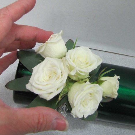 I continue tucking in more rose heads on the sides, but I use small heads than in the center.