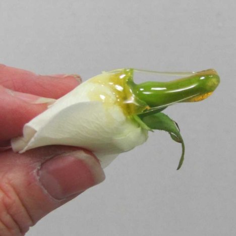 Hold for a few seconds to all the glue to become tacky and adhere the flower head in place.