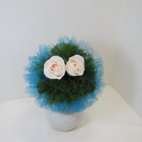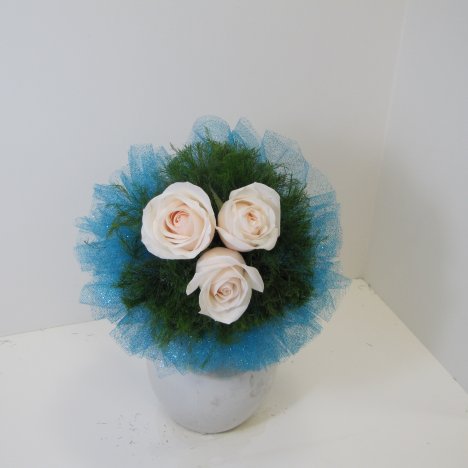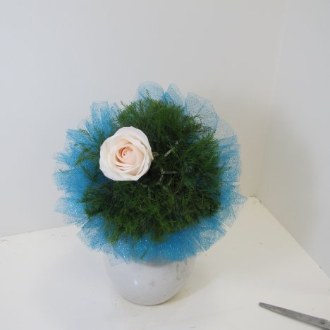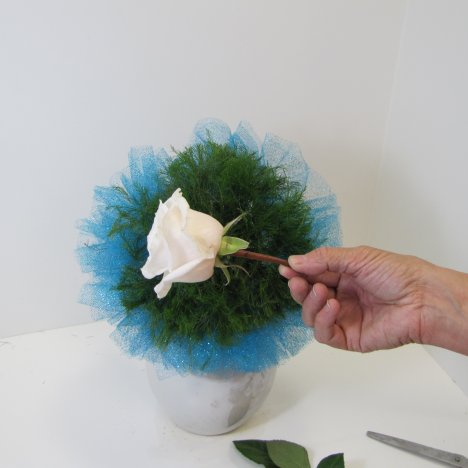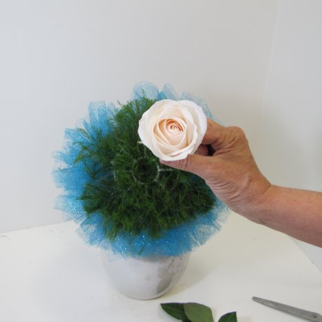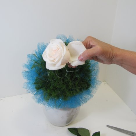 With the tulle and tree fern in place, now you can add your roses to the design.