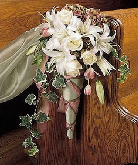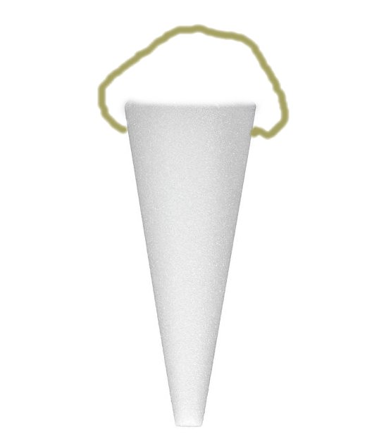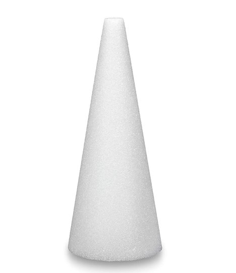A firm Styrofoam cone is used to make the base of the pew decoration. The size is up to use and will actually determine how many flowers will be needed. This is a 12" cone.