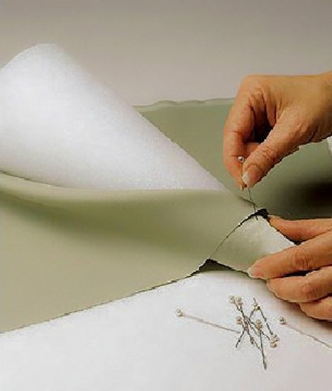 Pull up the sides of the fabric, trimming off excess corners or lengths as needed. Pin the fabric, concealing the foam cone.