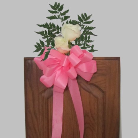 Elegant pew decorations can be as simple as a couple of fresh flowers and a few stems of greenery and filler. If you can use water tubes, you can easily place your flowers on the pews as early as the night before because they have a continual water source.