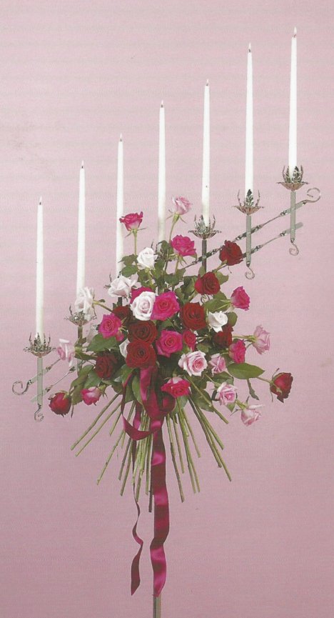 Candelabra flowers can be easily changed to a different color or flower variety to match your own wedding palette. Don't feel limited to this color only shown in the photograph because roses come in so many different amazing colors and shades.
