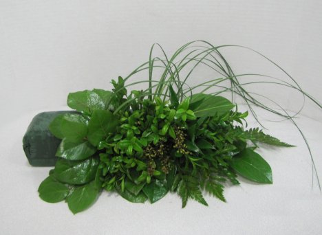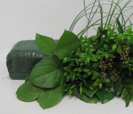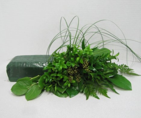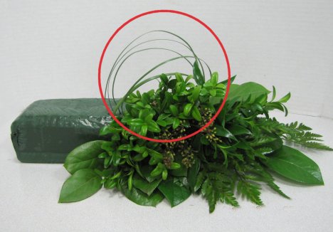 Grasses can add a lot of interest to arrangements. The stems are slender, however, and you have to use care in inserting them into the foam by first piercing the polyfilm on the Oasis spray bar.
