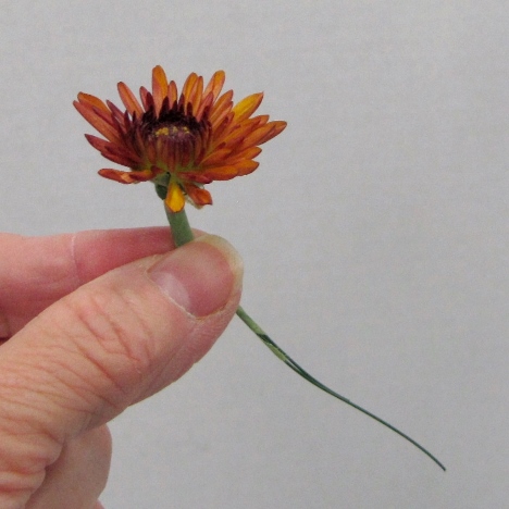 Tape into place with floral tape and cut off the excess wire stem of the button mum.