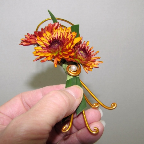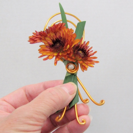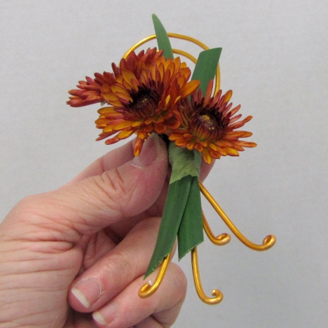 The results is a very fast, but attractive, wedding boutonniere that your groom would be proud to wear! Use the same technique for any small flower heads and different colors of wire.