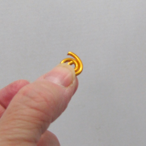 I cut a pearl headed corsage pin off short and dipped the cut end into floral adhesive and then pinned in the center of the decorative coil.