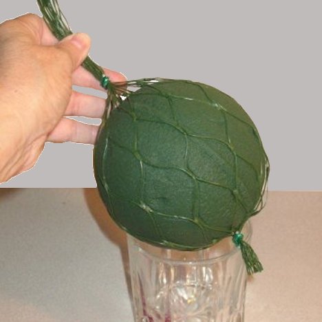 Oasis spheres need to be supported so the foam doesn't disintegrate. Florists used to tape the ball with waterproof tape before designing. Oasis netted balls has solved that problem and the foam doesn't need to be prepped like this anymore.