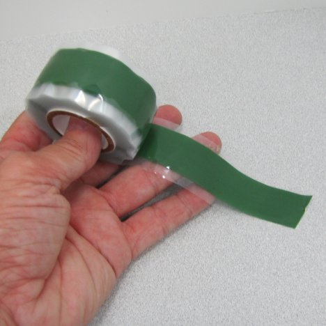 This tape doesn't seem to stick to anything - except itself. It stretches and creates a tight, waterproof wrap when wrapped around itself.