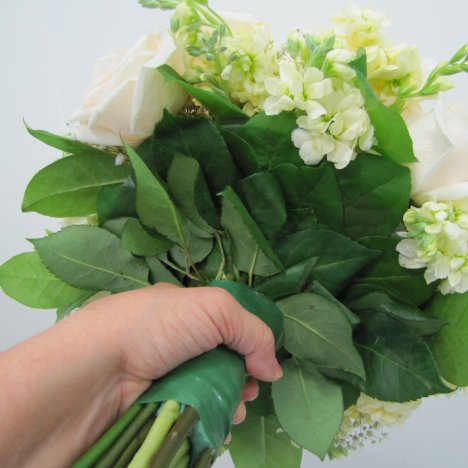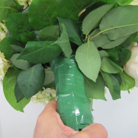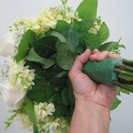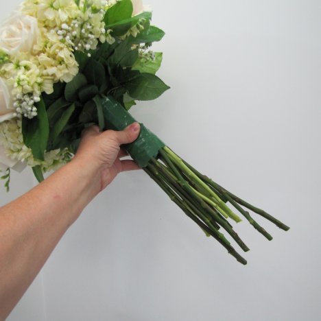 You will need to cut the flower stems to a manageable length for carrying on the wedding day. Don't do this until the Bind-IT tape is securely fastened and the stems are secure against the bouquet handle.