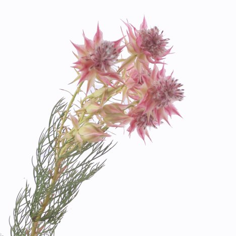 The bridal wreath protea comes in an off white and this soft pink. It is a newer variety that I fell in love with when I saw it in a wholesale cooler a couple of years ago. They have several individual blooms and long laterals for insertion.