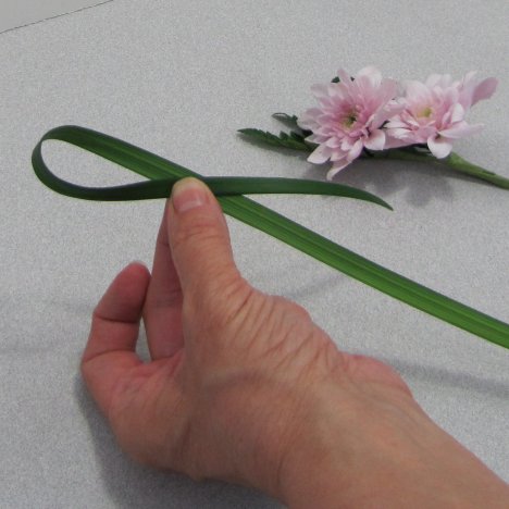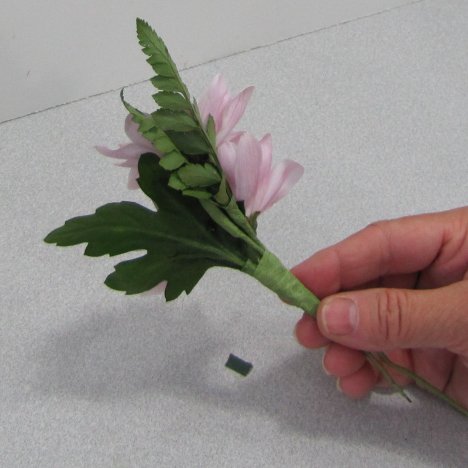 A single staple secures the grass into a permanent loop that can be taped behind the assembled boutonniere.