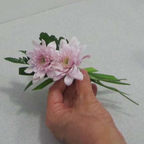 I like to use decorative grass loops in my boutonniere designs. All the stems should be bound tightly together and not move. or have large gaps between them.