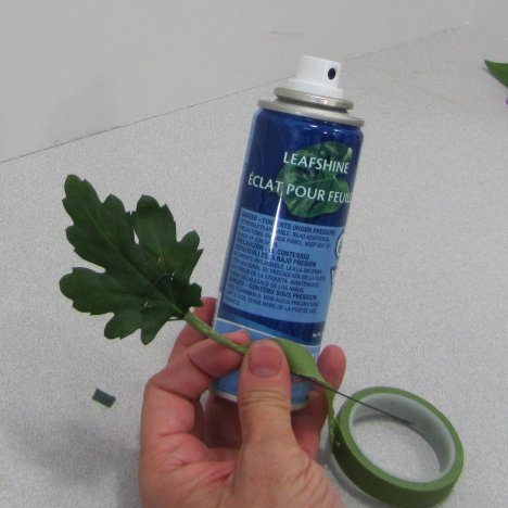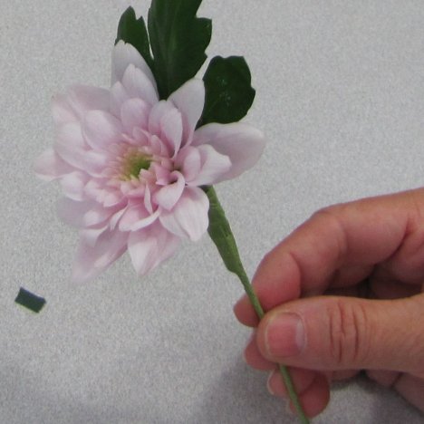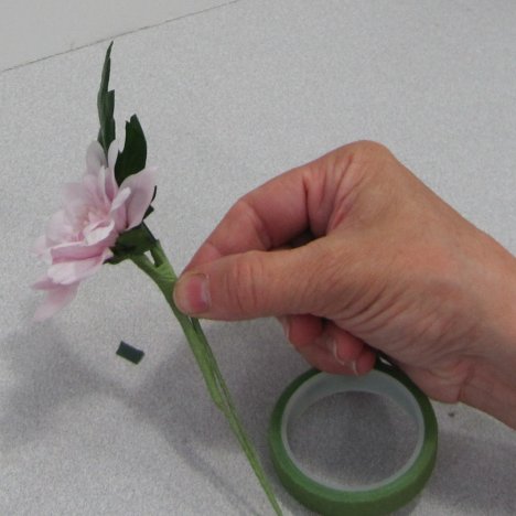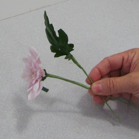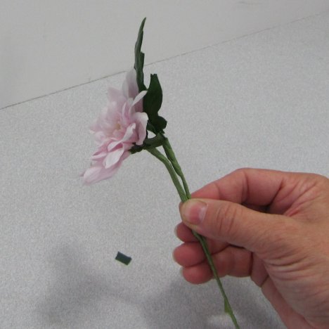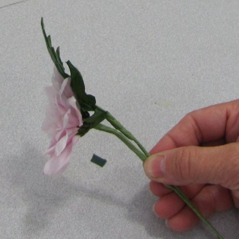 You can simply tape the leaf as it to the back of the unwired flower stem, but I like the control that wiring both gives me in being able to gently bend the flower to the way I want it to look.