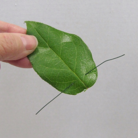 Pierce the leaf the with florist wire (I use 26 gauge).