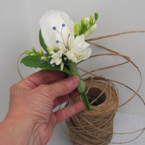 Pull the wire around the boutonniere stem and tightly twist to secure.