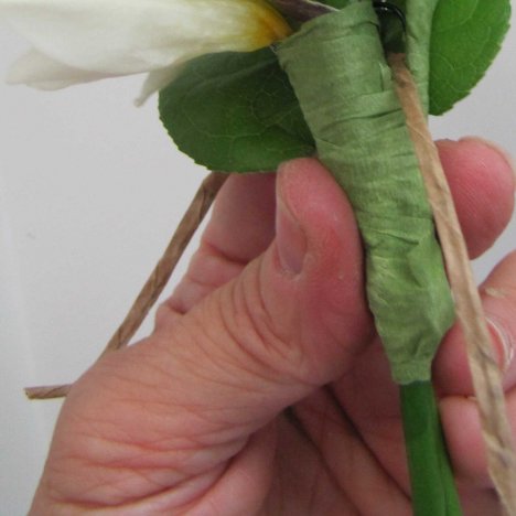 Hook the cut edge of the Bindwire between the stems of the flowers at the top.