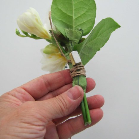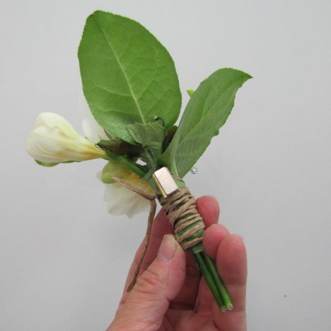 Finish off the Bindwire by twisting the two cut ends together and twirling the ends tightly against the side of the boutonniere.