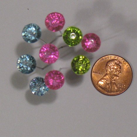 These Lomey Gems are 2" long and come 100 to a box. The clear heads sparkle and catch the light, looking lovely in photographs.
