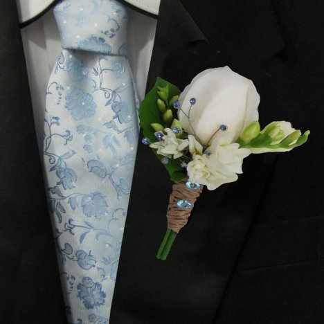 I've said again and again that making a boutonniere unique is precise attention to details. I love adding Lomey diamante pins to my wedding boutonniere flowers.