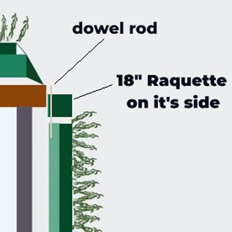 Since the Sculpting sheet is 22" x 22" - it doesn't quite reach the table top. The natural waterfall design can cover this, but to add a little more foam (4"), you can simply turn an 18" raquette on it's side (with the plastic tray against the table skirt) and pin it on top of the standing Sculpting Sheet with 2 or 3 wooden stakes. This is SOOOO much easier than trying to cut a second design sheet - because it takes just minutes and saves the mess of cutting through styrofoam and florist foam.