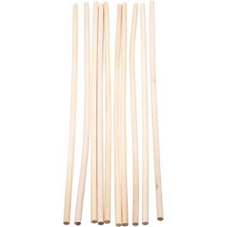 These rods can be purchased at local craft or lumber yards. They come in various thicknesses. You push them through the bottom of the styrofoam/florist foam sheet at a 90* angle as shown in the picture below. Use a couple of rods so that the sculpting sheet stands by itself. The back side of the rods will be concealed by the table cloth. The front sides will be covered by the greenery.*