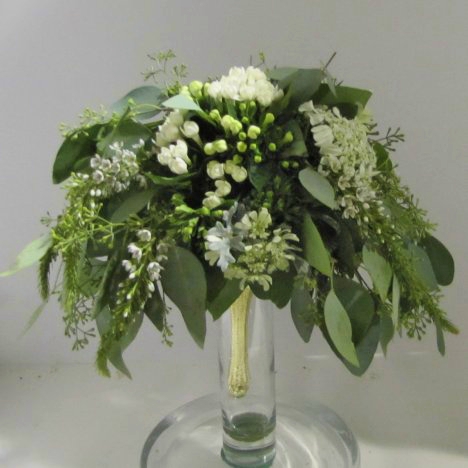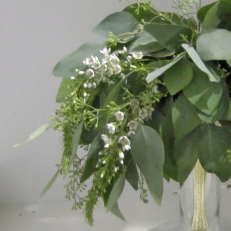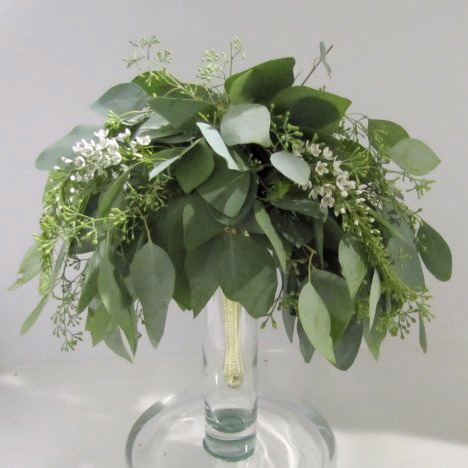 This brides bouquet was the actual one I carried in my own wedding in July, 2017. I was going for simplicity and have always loved the cool shades of green found in seeded eucalyptus bouquets.