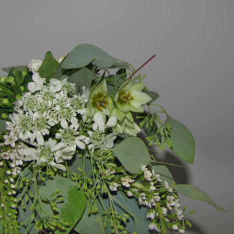These flowers nestled in close to the side of the scabiosia. The soft spring greens blend in well, giving this bouquet a natural, earthy tone.