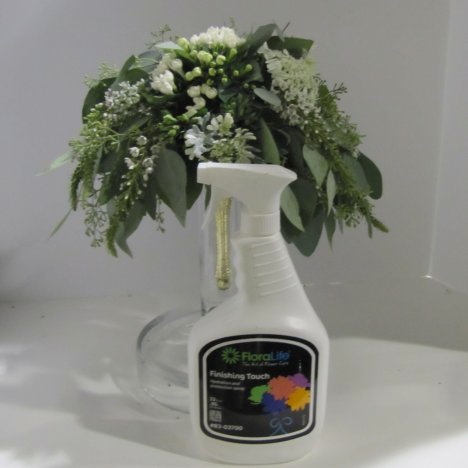 This bouquet is made up of very long lasting flowers and greens, but I still misted it well with Finishing Touch flower sealant and allowed it to dry before storing it in my refrigerator. The Finishing Touch will help guard against the moisture