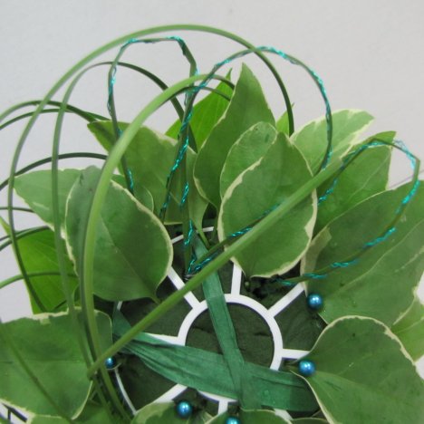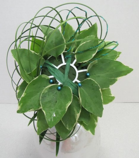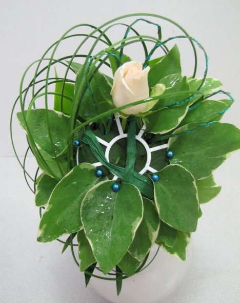 I inserted the first spray rose head pointing upwards. Take care to point your flower heads in a way the they are straight out in the center, begin to face outwards until the flowers on the outer rim are pointing out to the sides. This gives the bouquet more depth and a nice view of flower heads when viewed from the sides.