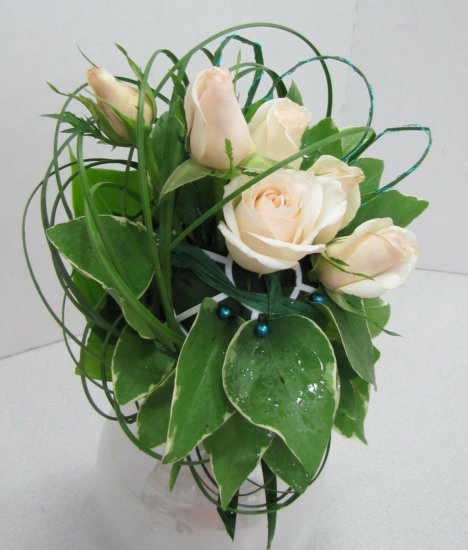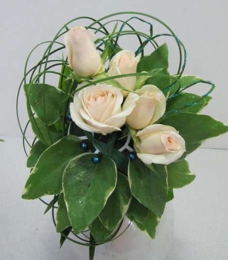 I put a more open rose in the center and tighter roses on the sides. Spray roses will continue to open if the bouquet holder is kept completely saturated. Don't forget to re-water your bouquets all the way up to the wedding day.