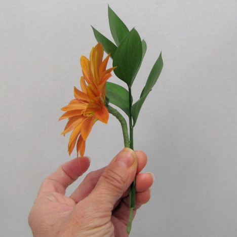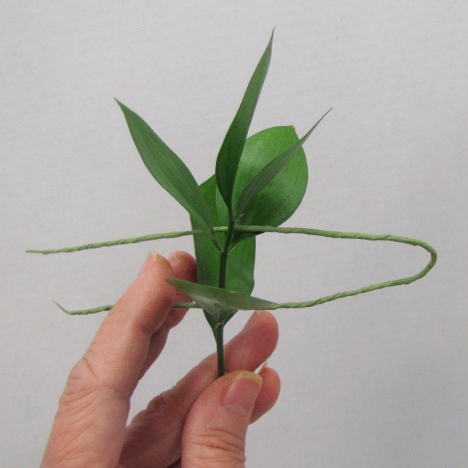 Before I tape the ruscus to the daisy, I want to wire it so I can bend and manipulate it exactly where I want it.