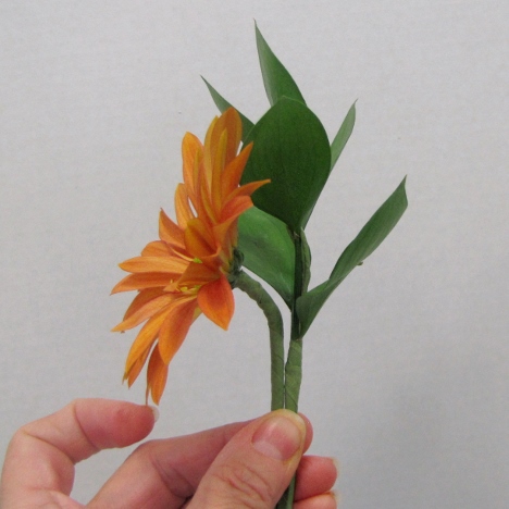 You can see how I "hooked" the flower in between the leaves before taping the stems together.