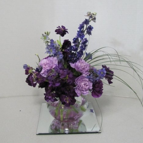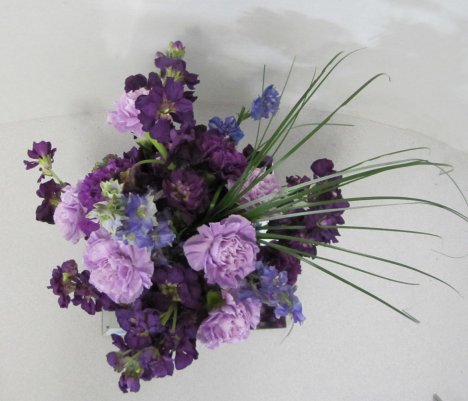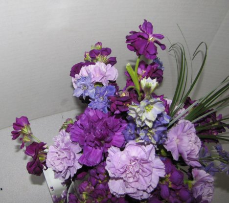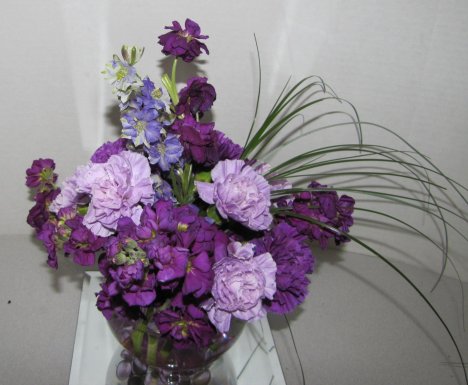 Just tuck in a few here and there among the other flowers. Give the center delphinium a little more height.