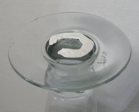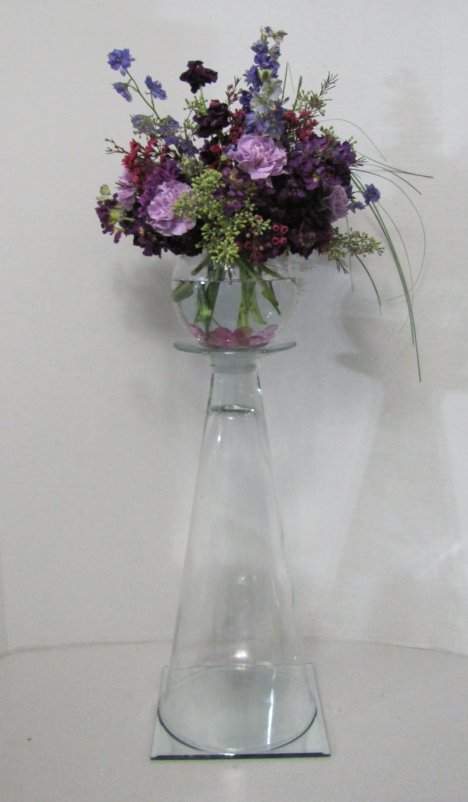 Bubble bowl designs can add more drama if you add a lot of height! Take a tall trumpet centerpiece (I bought this one at Wal-Mart) and place a ring of florist clay on the flat foot of the bottom of the big vase.