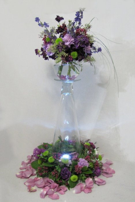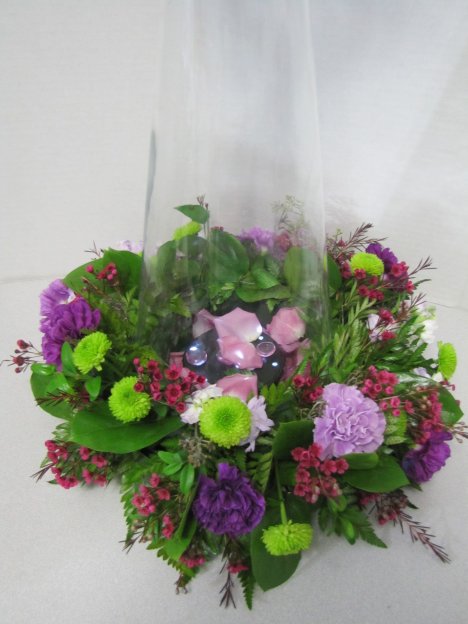 Now add the bubble bowl design by placing it on the top and pressing it down solidly. (Please don't try to transport the flowers this way. You need to transport the piece separately to the reception hall and then do this setup and place immediately on the tables.